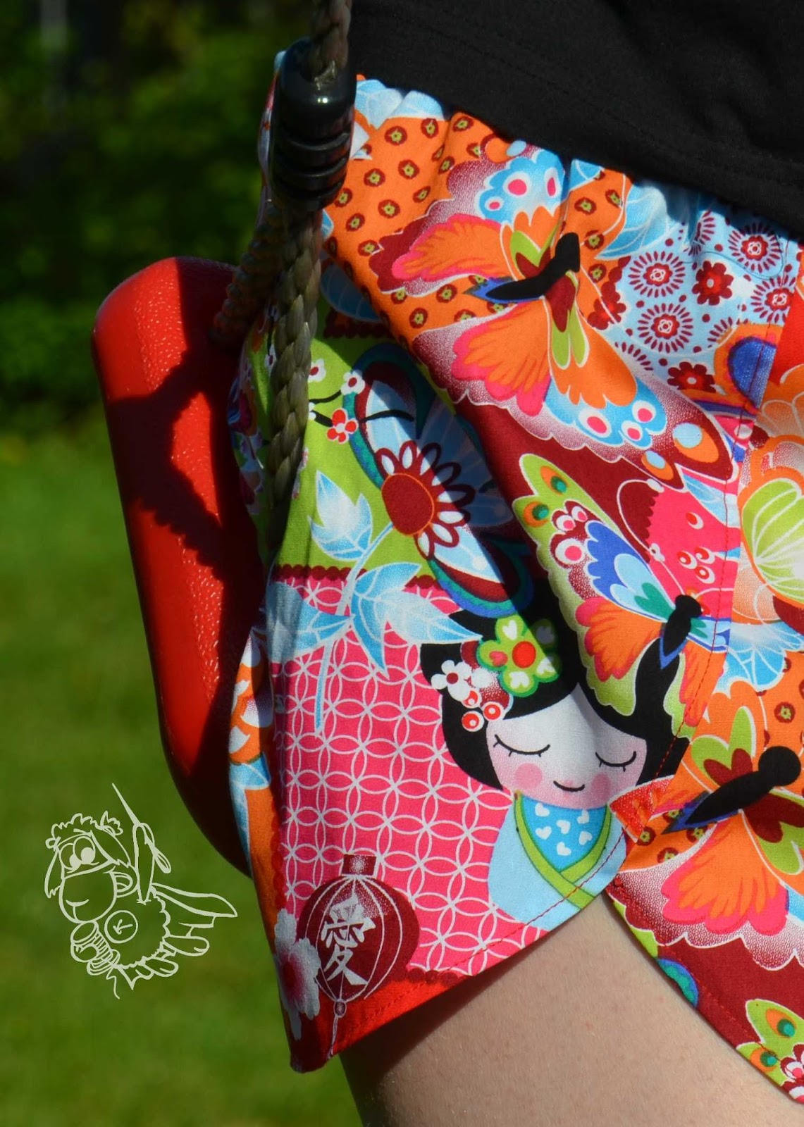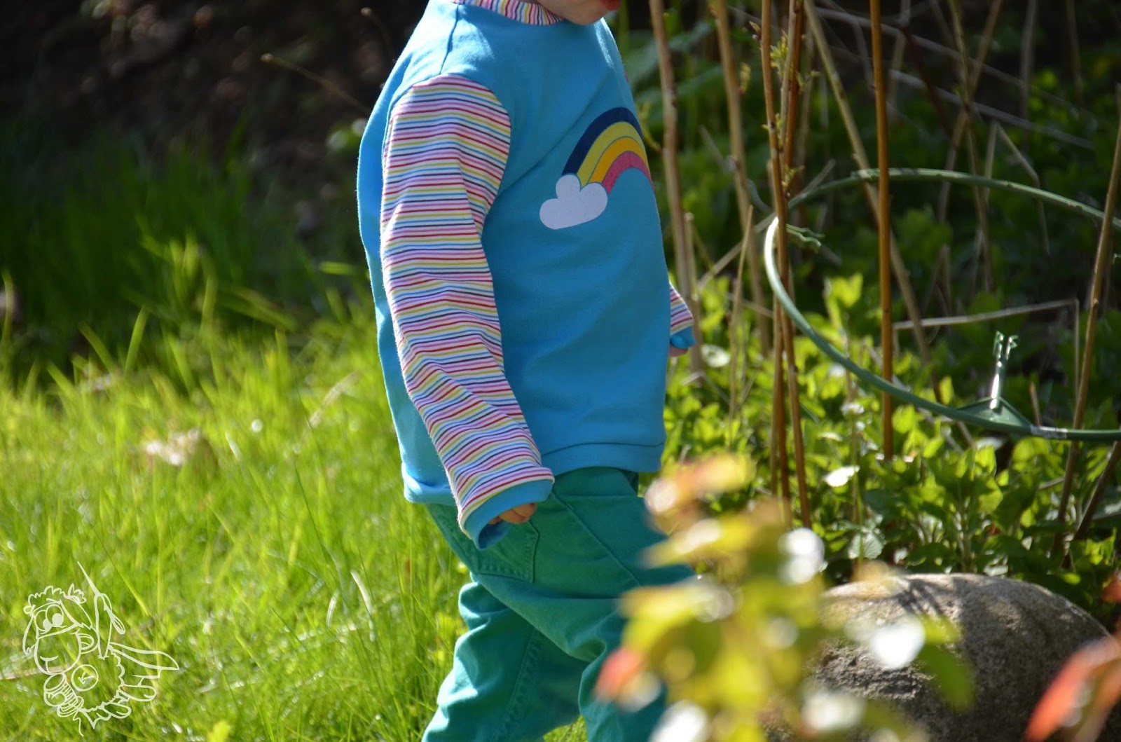 Der Regenbogen ist aus Flockfolie, genau wie die Wolken und die Herzen. Der Schnitt ist aus dem Buch Nähen mit Jersey von Klimperklein.