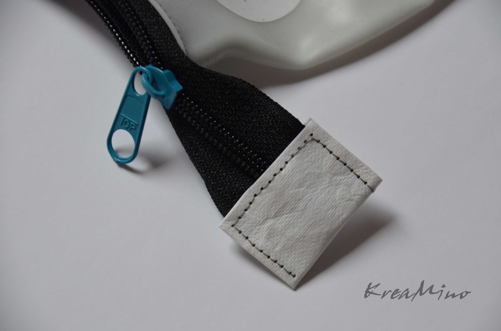 Zum Schluss den Zipper aufziehen und die Reißverschlussenden mit einem Stück SnapPap, Leder, Stoff oder was auch immer einschlagen.
