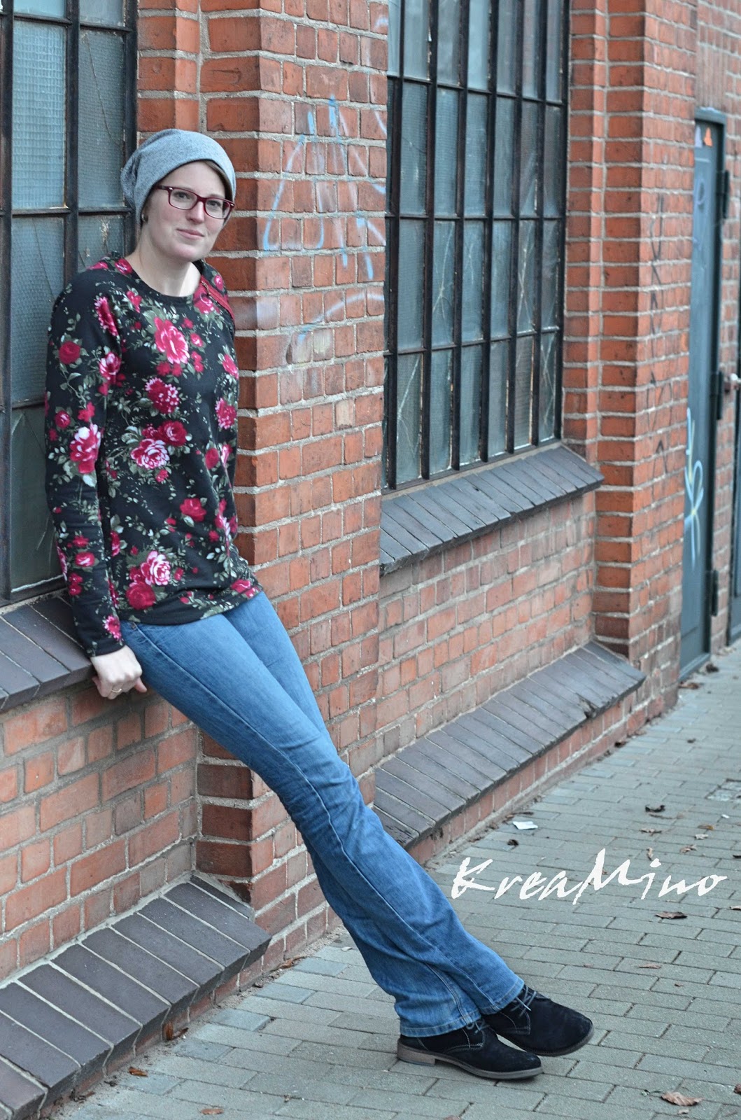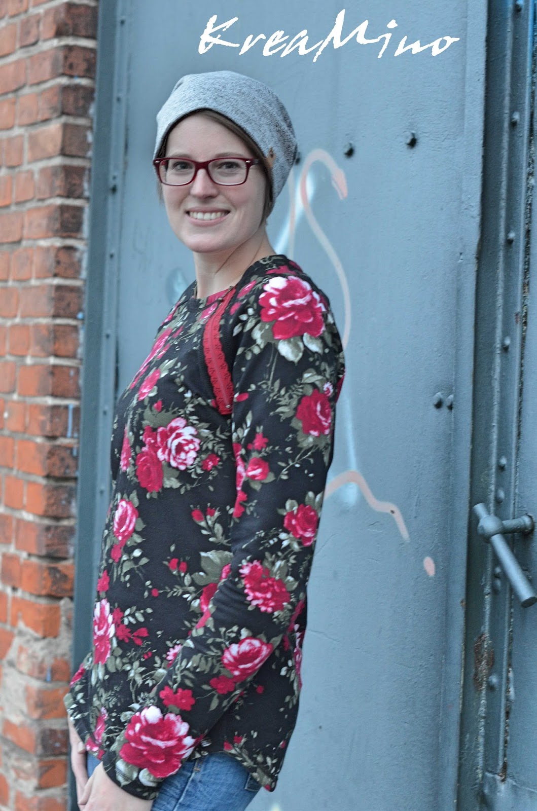Ich liebe diesen Stoff – bzw. das Design! Schon der Jersey ist bei mir eingeschlagen… Ich mag das weibliche, das romantische, aber auch diesen Kontrast zwischen dem Schwarz und diesen romantischen Rosen. Wirklich sehr gut gelungen!
