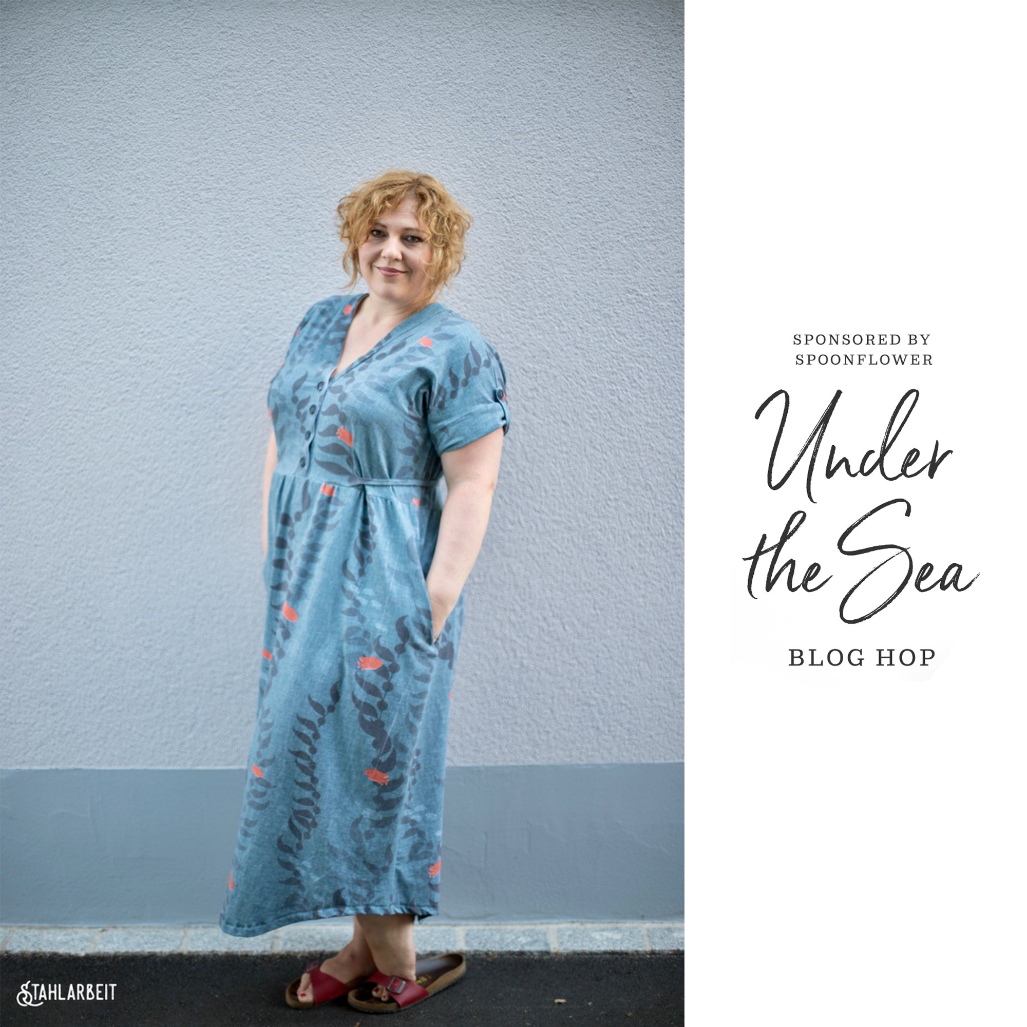 Bevor ich euch gleich mit Daten und Fakten zur Blog Tour , sowie einer kurzen englischen Version des Textes, überfalle, noch ein paar Worte zum Schnitt. Der Schnitt kommt in 2 Varianten daher und wird in beiden gefüttert. Das habe ich allerdings aufgrund des angenehmen Stoffes auf der Haut nicht gemacht und im Armausschnittbereich stattdessen einen Beleg angenäht. Der Halsausschnitt bzw. die Träger sind so oder so gedoppelt und dann habe ich den Beleg der Träger einfach um einen Beleg für die Armausschnitte erweitert. Aktuell hat das Kleid keine Taschen, da ich es im Bauchbereich um 1 Nummer größer genäht habe als normal und ich hatte einfach Angst, dass die Taschen dann aufklappen, weil der Bauch dann doch noch kurz vor Schluss explodiert. Diese Sorge ist aber so gut wie unbegründet – ich hätte entweder Taschen einnähen können oder sogar die Nummer größer weglassen können. So ist das halt. Der Schnitt ist gut erklärt und ich kann mir auch eine noch herbstlichere Version aus Cord sehr gut vorstellen. Ein schönes Fundstück dieses Schnittmuster!