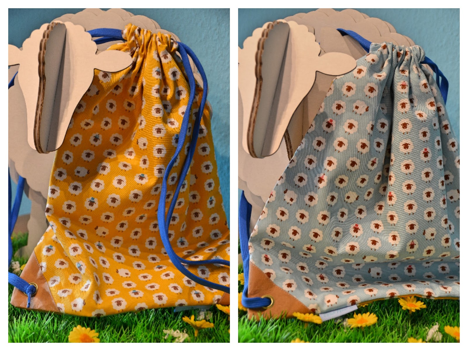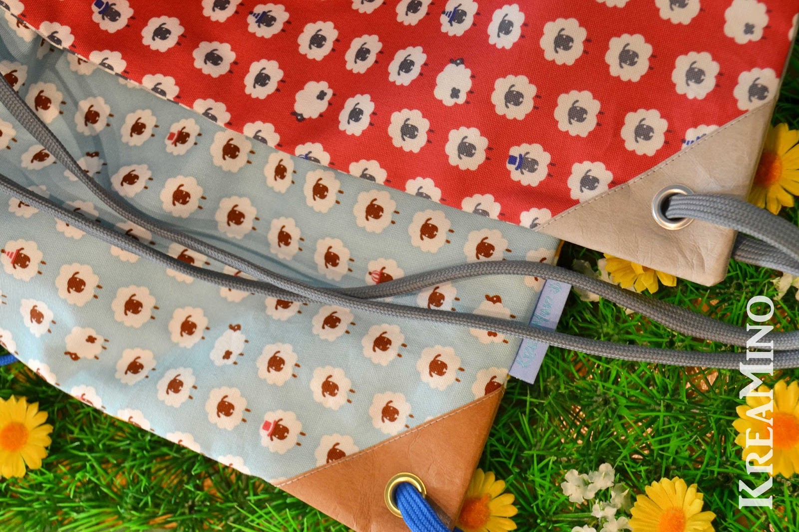 Genäht habe ich es aus einem schlichten braunen Sommersweat mit ganz interessanter Oberfläche – so eine leichte Waffelstruktur in beige/braun. Die Struktur wollte ich nicht durch abgesteppte Säume unterbrechen und habe somit alle Kanten mit der Hand gesäumt und das Schrägband aus braunem Kunstleder ebenfalls angenäht – ist ja klar. Michaela kann das bestätigen, denn einen großen Teil hab ich bei ihr im Auto genäht auf der Fahrt zum Stoffladen 😉