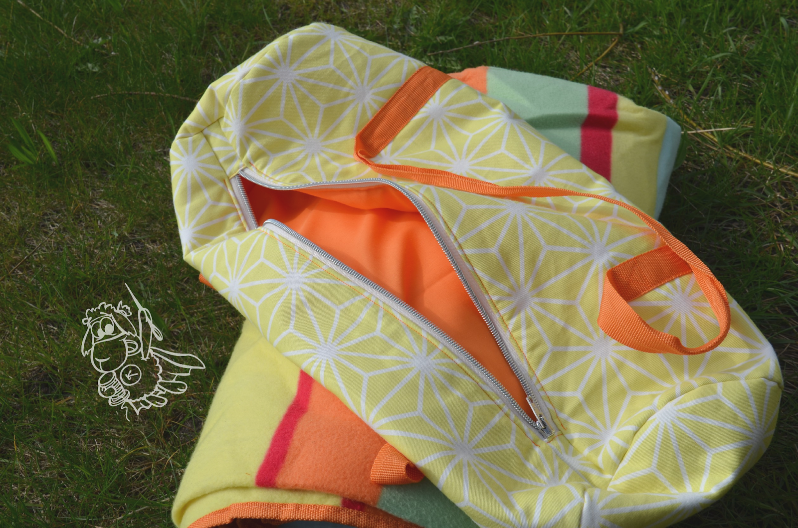 Kerstin von Keko Kreativ hat ein neues Ebook herausgebracht um eure Yogamatten und Gymnastikmatten gut zu verpacken und zu transportieren. In Ermangelung einer Yogamatte habe ich eine Tasche für unsere Strand – bzw. Picknickdecke genäht, denn auch das geht ganz wunderbar nach ihrem Ebook.